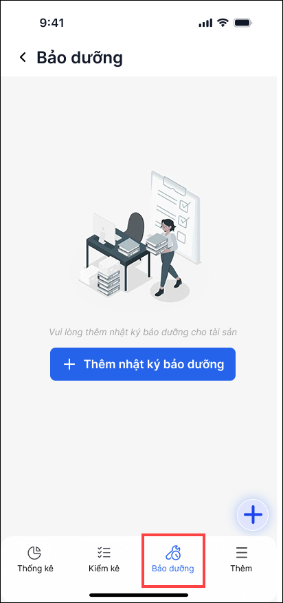 5. Cán bộ QLTS có thể thêm phiếu bảo dưỡng tài sản trên ứng dụng Tài sản mobile.