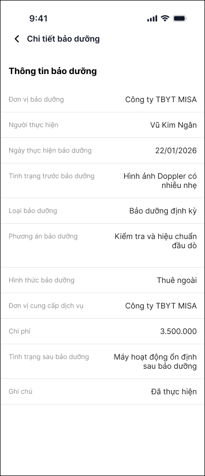 2. Anh/chị bấm vào từng đợt bảo dưỡng để xem chi tiết quá trình bảo dưỡng thiết bị y tế