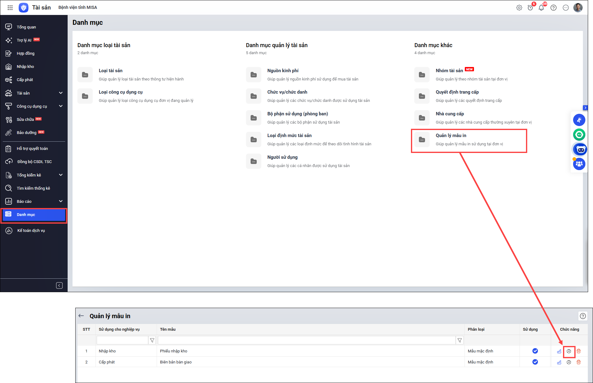 1. Vào Danh mục/Quản lý mẫu in