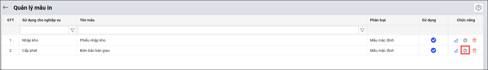 2. Nhấn vào biểu tượng máy in tại mẫu phiếu nhập kho