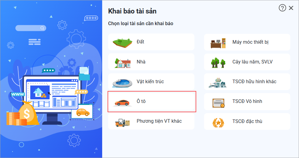 2. Chọn loại tài sản Ô tô