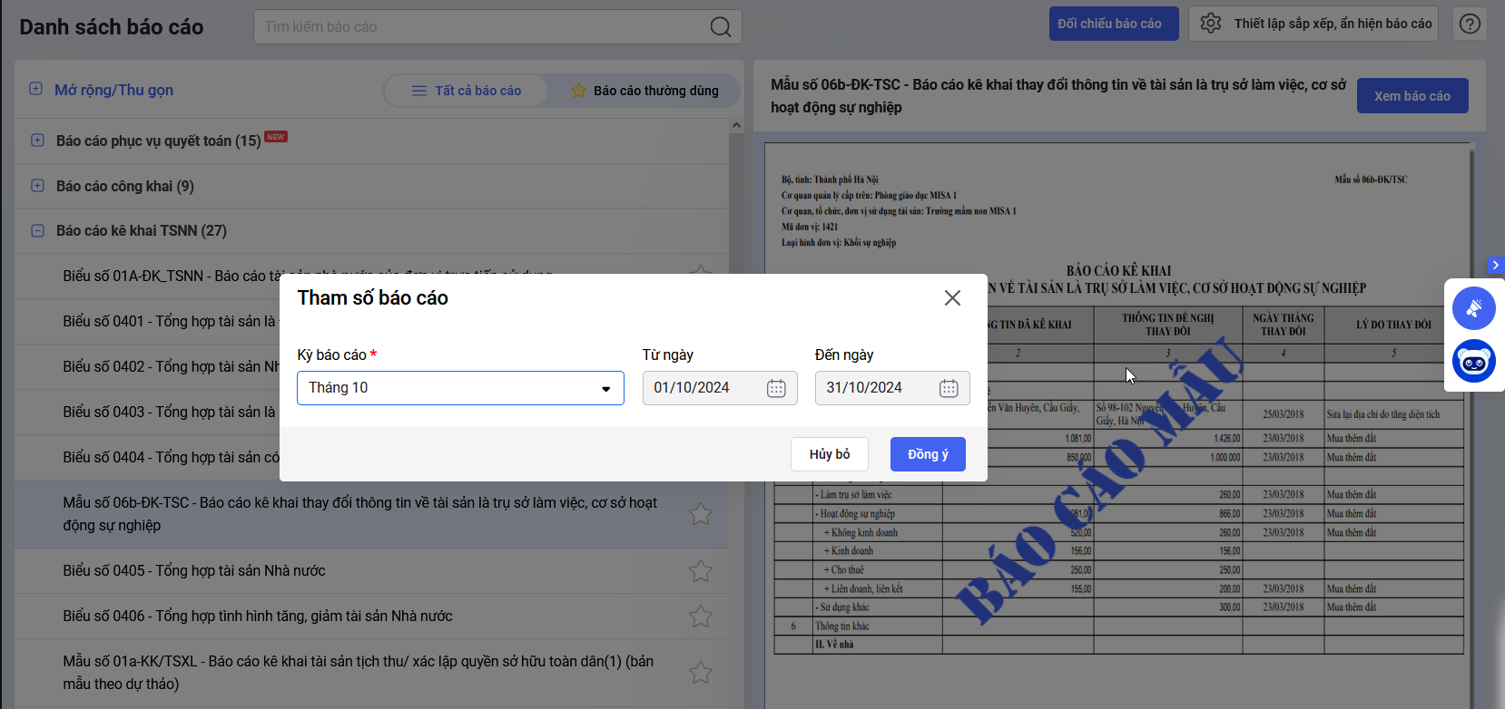 - Thời điểm nộp báo cáo: Trong vòng 30 ngày kể từ ngày có thay đổi thông tin về tài sản.