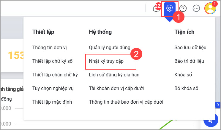 - Vào menu Hệ thống tại góc trên bên phải màn hình, nhấn Nhật ký truy cập.
