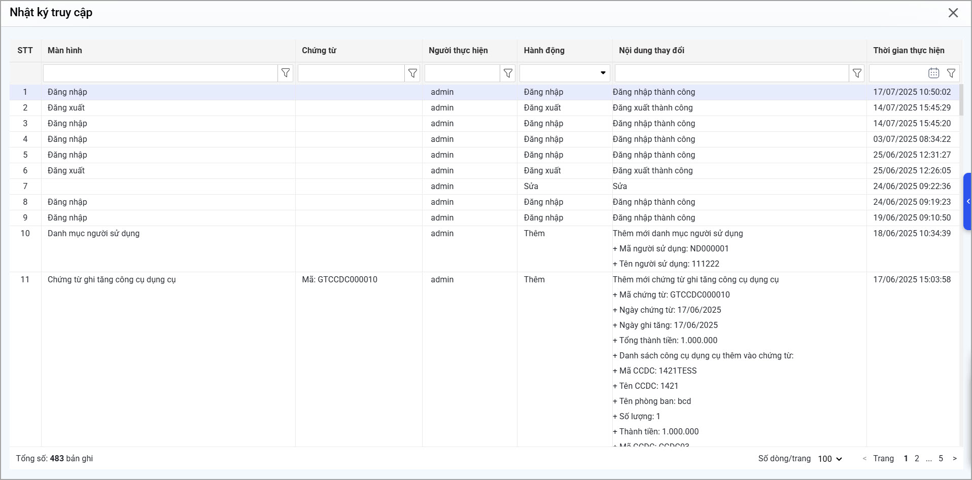 Mục đích: Giúp người dùng tra cứu lại lịch sự nhật ký truy cập, thao tác trên phần mềm.