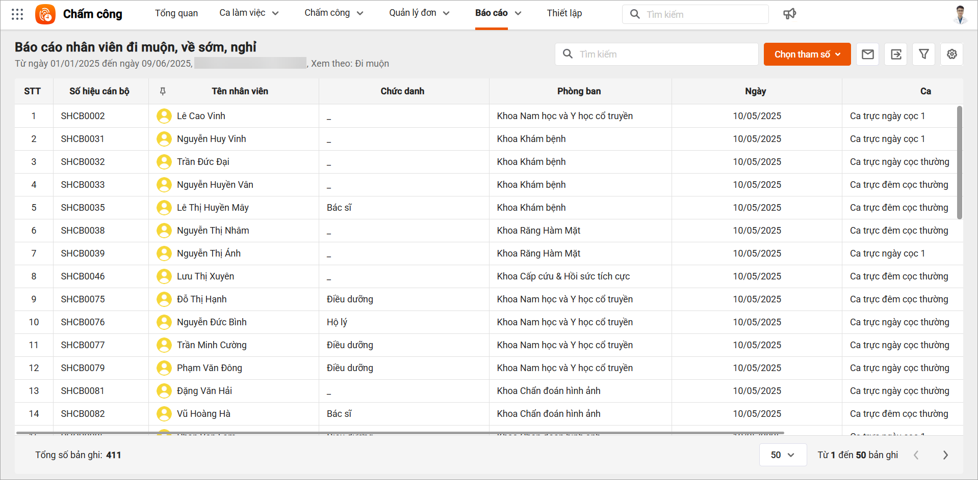 Bước 3: Xem báo cáo về tình hình đi muộn, về sớm