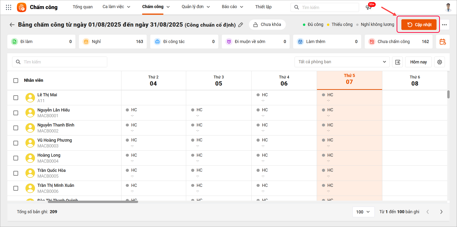 Sau khi nhấn “Cập nhật”, chương trình sẽ tự động tính toán lại dữ liệu theo các thiết lập trước đó nên các dữ liệu được nhập khẩu vào sẽ không còn nữa.