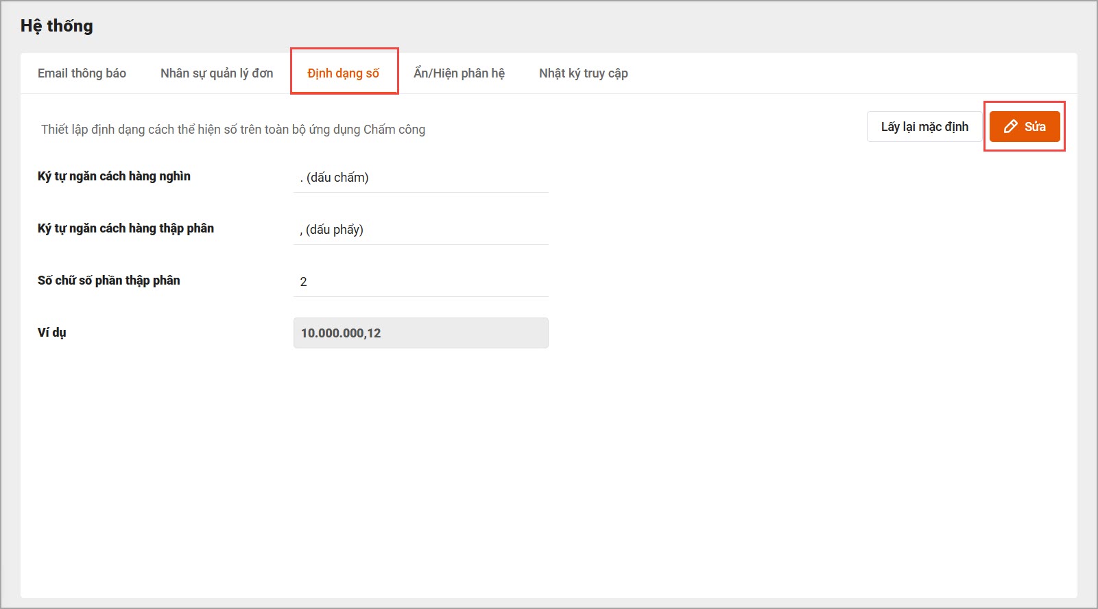 – Cho phép tùy chỉnh các quy tắc thể hiện số gồm: