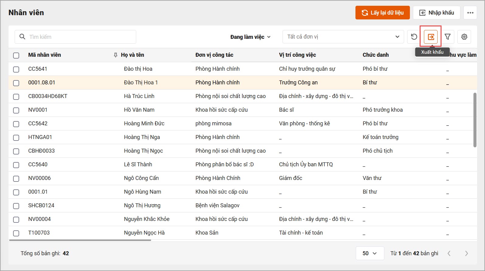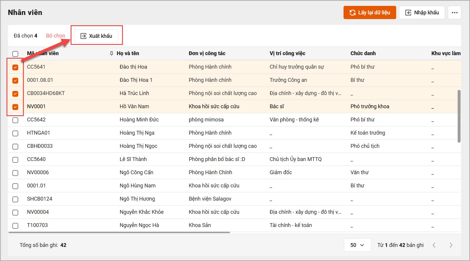 • Xuất khẩu tất cả CBNV trên danh sách: