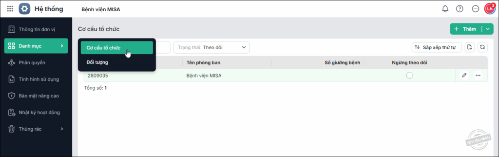 - Hoặc anh/chị vào phân hệ Danh mục, chọn Cơ cấu tổ chức.
