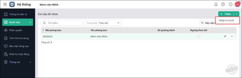 Mục đích: Bài viết hướng dẫn quản trị hệ thống nhập khẩu nhanh danh mục phòng ban từ file excel vào Hệ thống khi bắt đầu sử dụng nền tảng MISA iHOS, để không cần khai báo thủ công từng phòng ban, tiết kiệm thời gian và thao tác thực hiện.