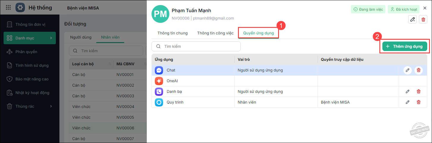 Ví dụ: Phân quyền sử dụng ứng dụng Văn thư.