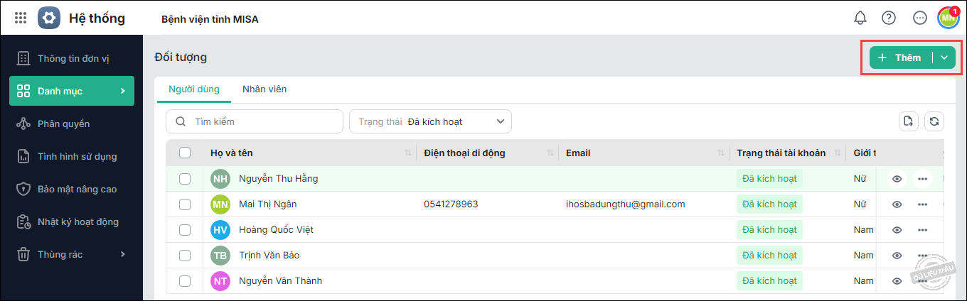 - Vào Danh mục\Đối tượng, chọn Thêm.