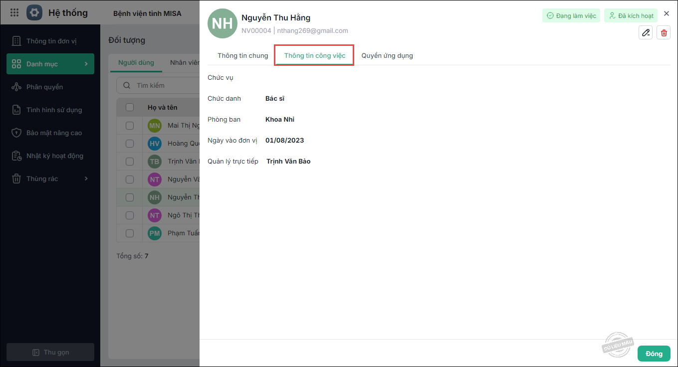 - Quản trị hệ thống theo dõi thông tin quản lý trực tiếp của CBNV tại Thông tin công việc.