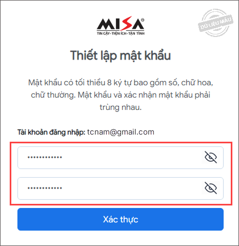 3. Nhập mật khẩu và xác thực mật khẩu. Nhấn Xác thực.