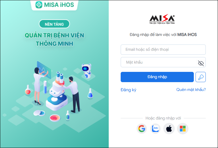 Hoặc anh/chị truy cập vào đường dẫn https://ihosapp.misa.vn/ và thực hiện đăng nhập.