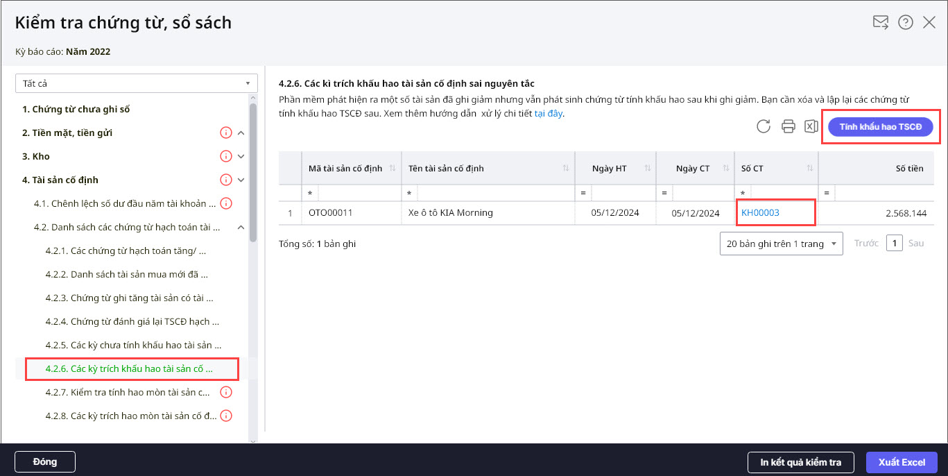 4. 4.2.6. Kiểm tra các kỳ trích khấu hao TSCĐ sai nguyên tắc