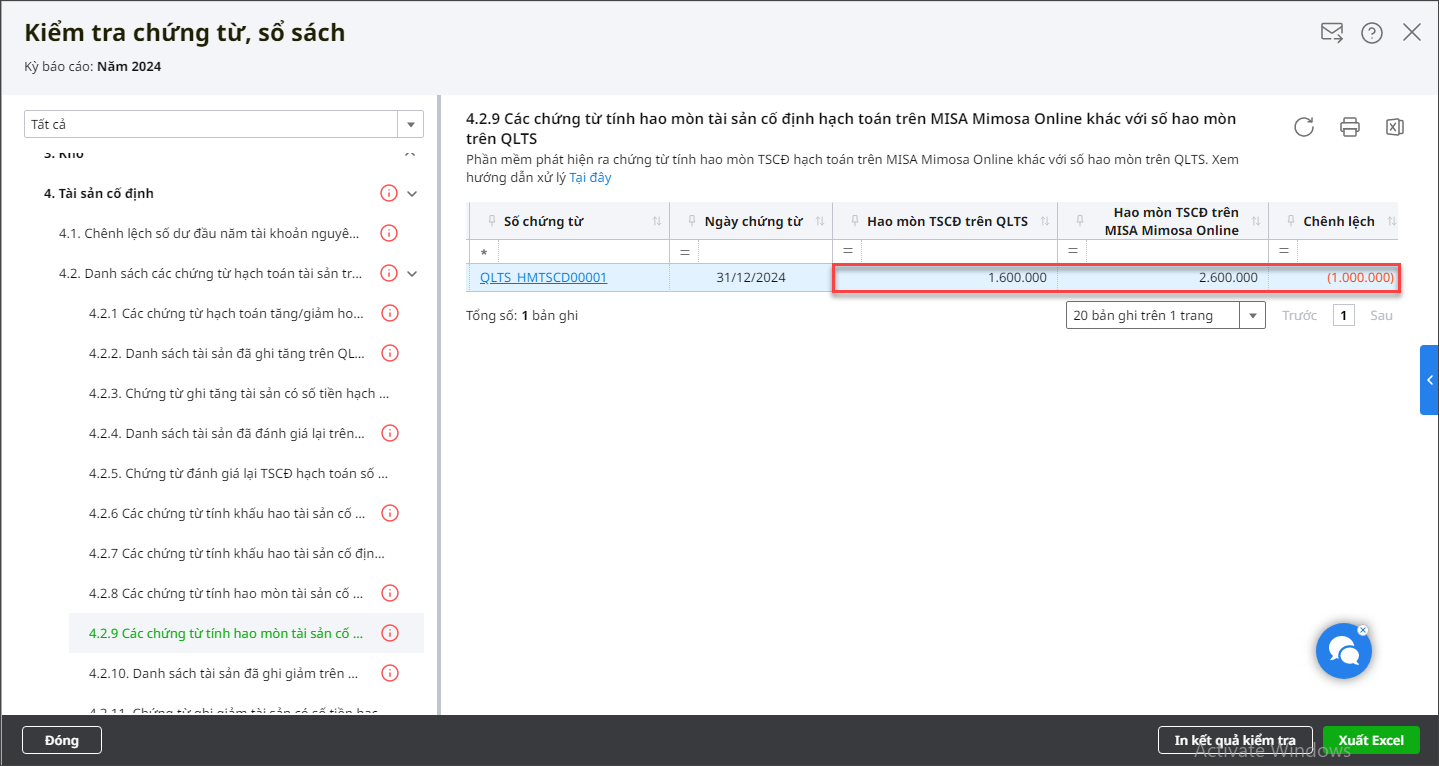 Bài viết này hướng dẫn anh/chị cách kiểm tra và xử lý khi thực hiện kiểm tra chứng từ, sổ sách phần mềm cảnh báo có chứng từ hao mòn tài sản cố định hạch toán trên Mimosa online khác với số hao mòn trên QLTS.