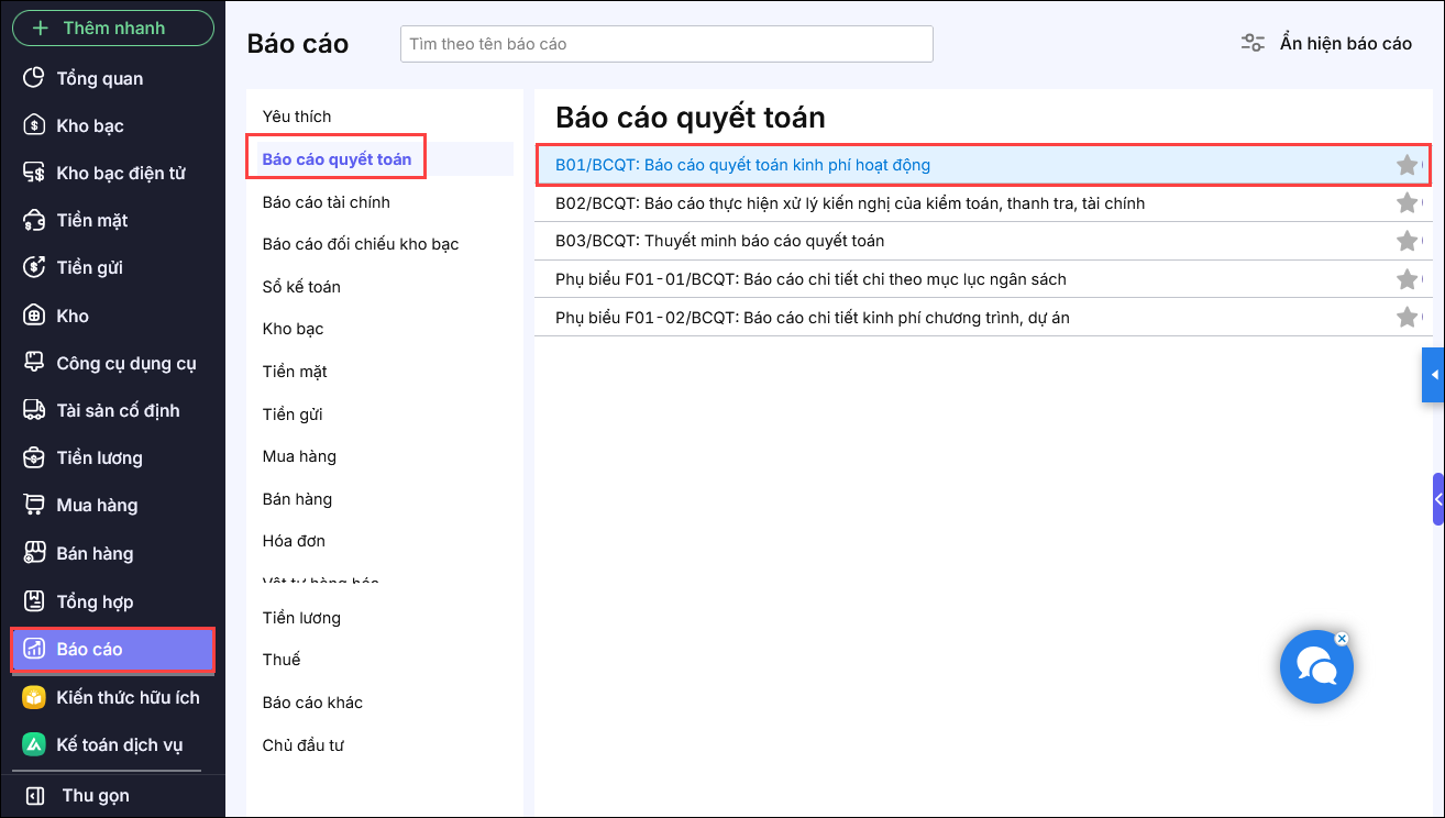 4. Báo cáo B01/BCQT: Báo cáo quyết toán kinh phí hoạt động
