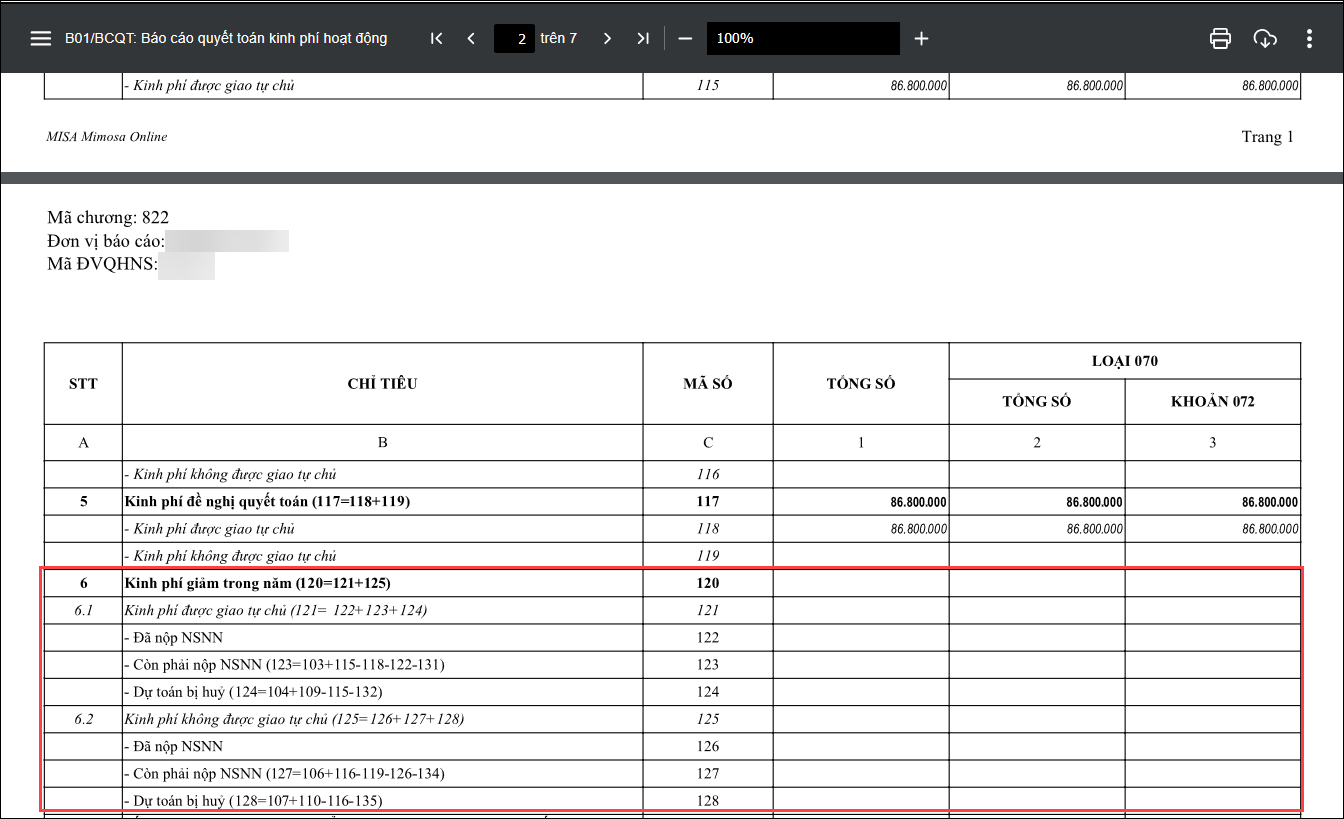 Bài viết này hướng dẫn anh/chị cách kiểm tra và xử lý khi khi báo cáo B01/BCQT – Báo cáo quyết toán kinh phí hoạt động lên sai chỉ tiêu Kinh phí giảm trong năm (Mã số 120).