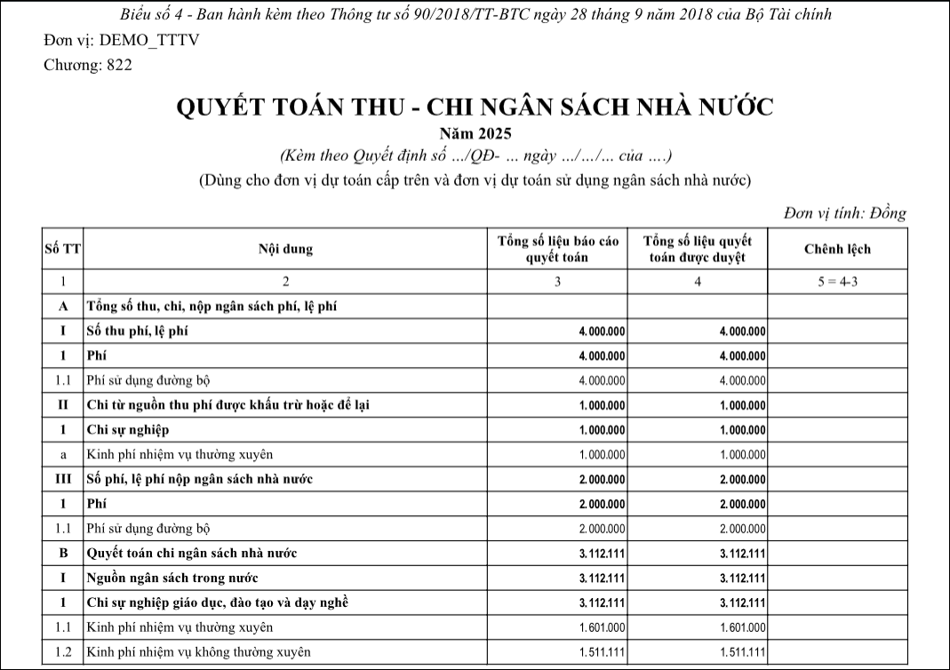 Bài viết này hướng dẫn anh/chị cách xem và kiểm tra Biểu số 4: Quyết toán thu – chi ngân sách nhà nước (Thông tư 90/2018/TT-BTC) khi thấy báo cáo không lên số liệu, hoặc không lên đủ, đúng số liệu phát sinh.