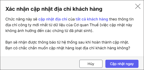 Bài viết này hướng dẫn anh chị nắm được phần mềm đã đáp ứng tự động cập nhật thông tin địa chỉ khách hàng, nhà cung cấp theo thông tin mới nhất của Tổng cục Thuế.