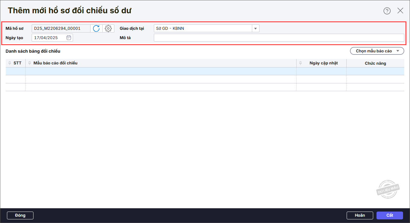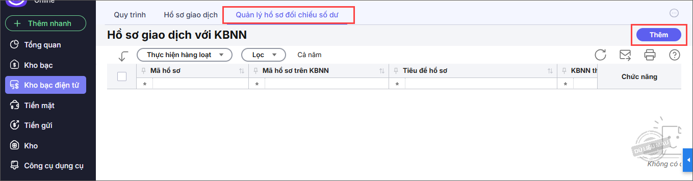 Bước 1: Vào tab Quản lý hồ sơ đối chiếu số dư, nhấn Thêm.