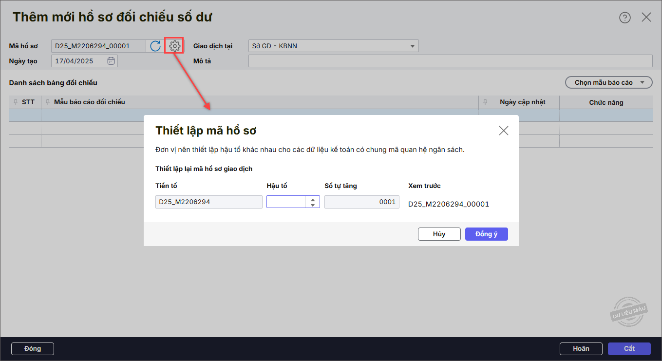 • Nhập Hậu tố cho Mã hồ sơ giao dịch.