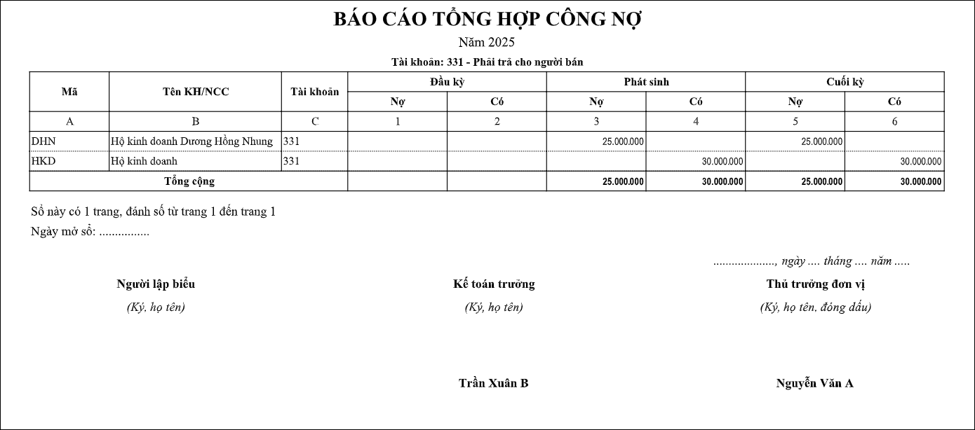 Trường hợp nếu Dư Nợ và Dư Có TK 331 khi xem báo cáo S05-H (Mẫu số dư 2 bên) chưa đúng với thực tế thì anh/ chị kiểm tra tiếp Báo cáo tổng hợp công nợ theo mục 3.2.