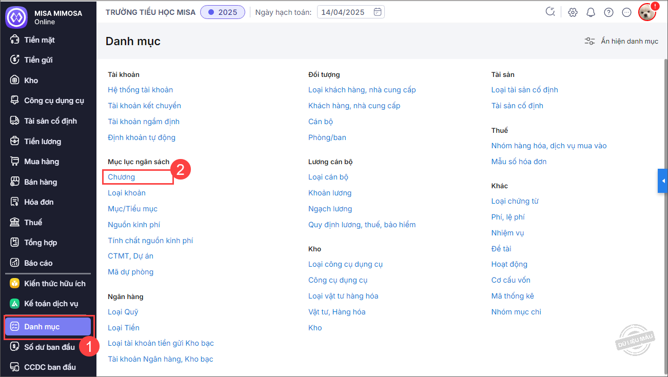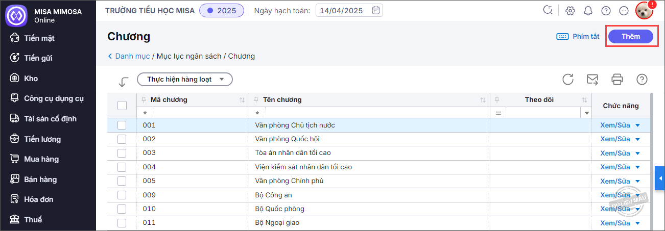 Bài viết này giúp anh/chị nắm được các thao tác cơ bản để thêm mới, sửa đổi, theo dõi, xóa hoặc chuyển chương hạch toán với Danh mục Chương trên phần mềm MISA iHOS Kế Toán, đảm bảo đáp ứng đúng nghiệp vụ và quy định hiện hành.