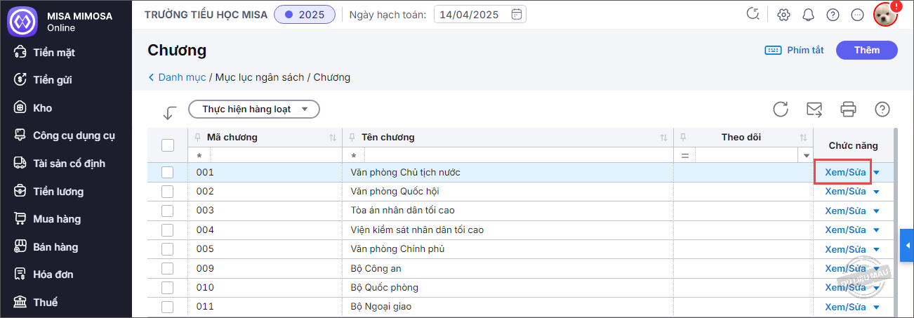 Bước 3: Tích đúp chuột hoặc nhấn Xem/Sửa tại dòng Chương cần sửa