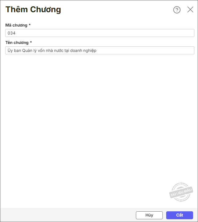 - Nhập Mã chương, Tên chương vào các ô nhập liệu tương ứng (Bắt buộc nhập).