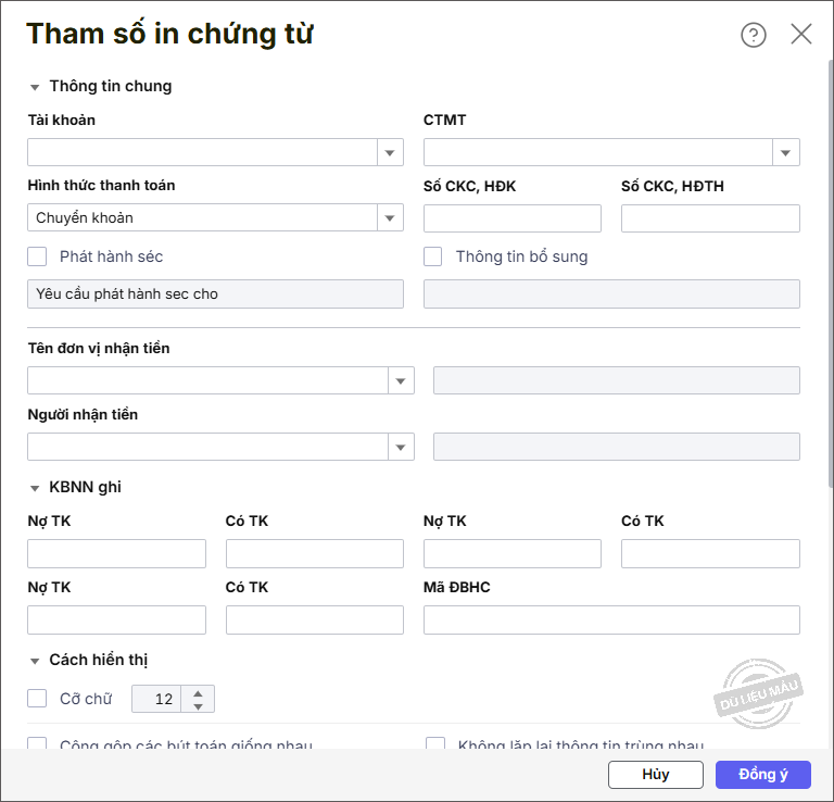 – Nhập thông tin Chứng từ.