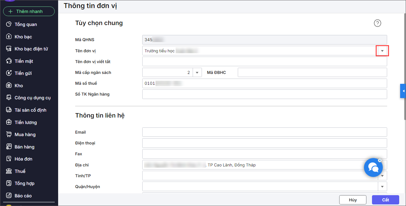 Kể từ phiên bản R5: Sau khi NVKD cập nhật thay đổi Tên đơn vị và Mã QHNS thành công trên hệ thống IMS, phần mềm MISA Mimosa Online sẽ tự động đồng bộ các thông tin này để đơn vị sử dụng. Đáp ứng cho người dùng có thể tùy chọn Tên đơn vị và Mã QHNS để in báo cáo theo nhu cầu.