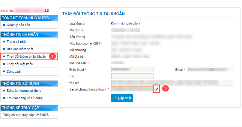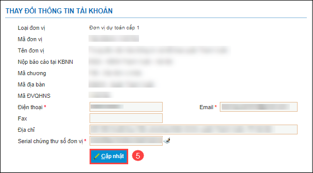 Bước 5: Sau khi thay đổi xong Serial chứng thư số, nhấn Cập nhật.