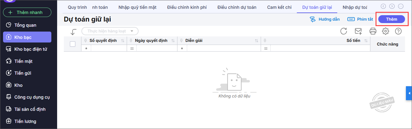 2.1. Thêm mới Dự toán giữ lại
