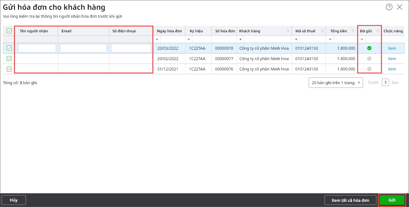2.2 Gửi hóa đơn hàng loạt cho khách hàng