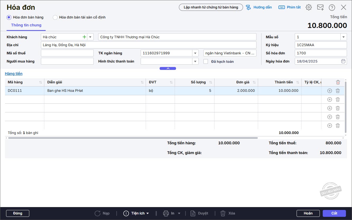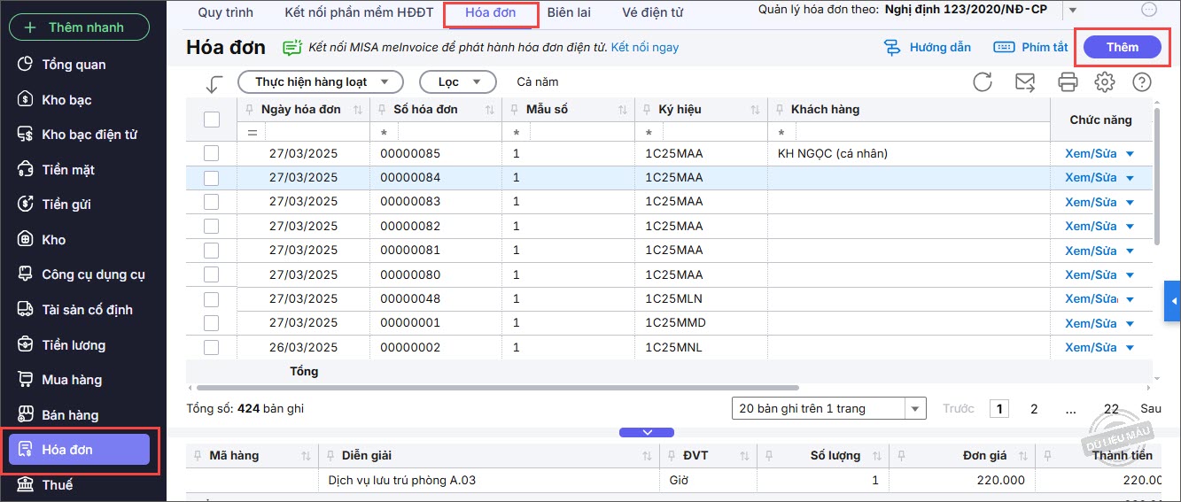 – Nhập thông tin Hóa đơn: