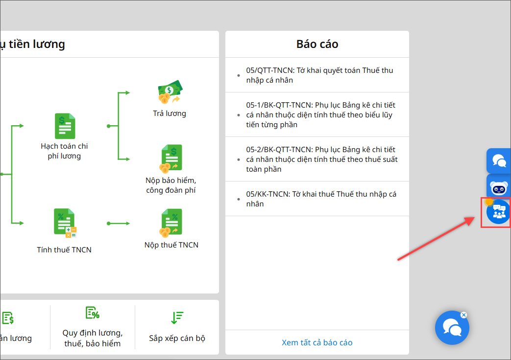 Bước 1: Khi cần hỗ trợ hoặc giải đáp thắc mắc, anh/chị chỉ cần nhấn vào biểu tượng Hỏi cộng đồng MISA ngay trên phần mềm.