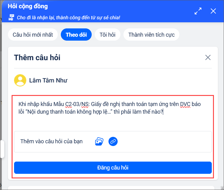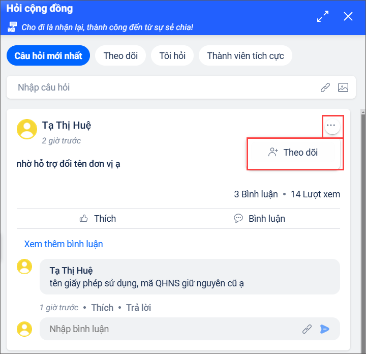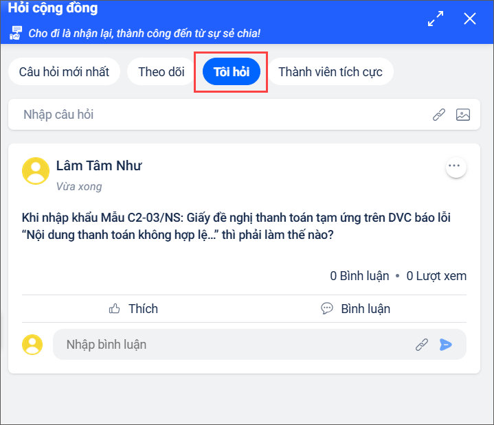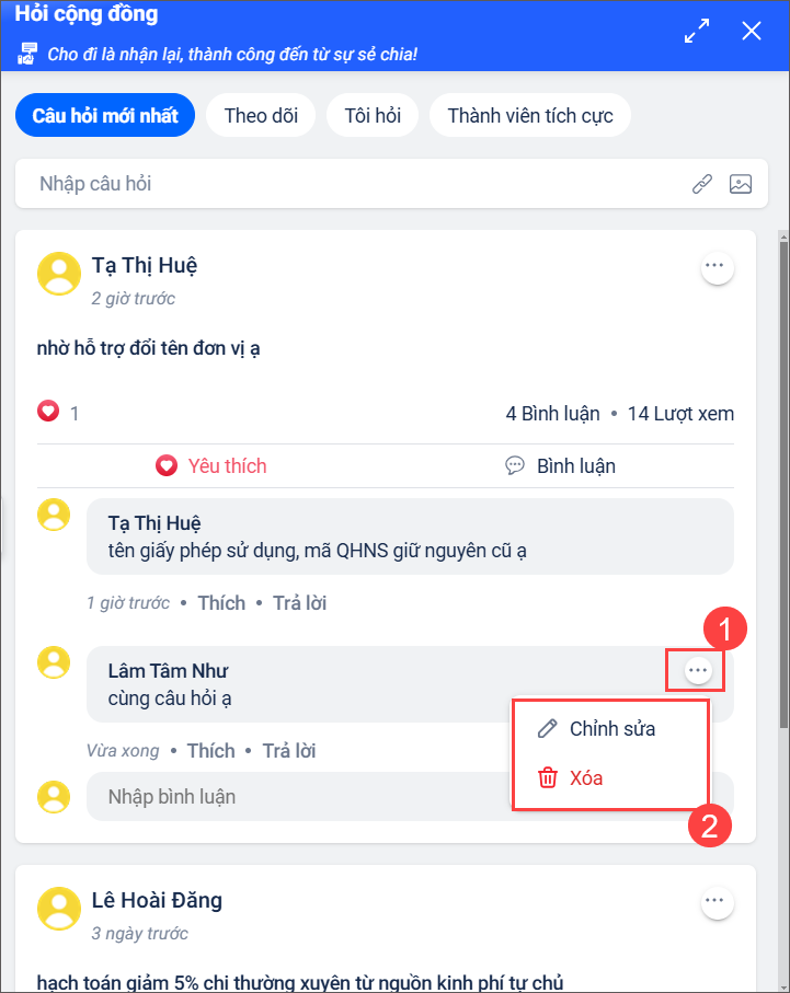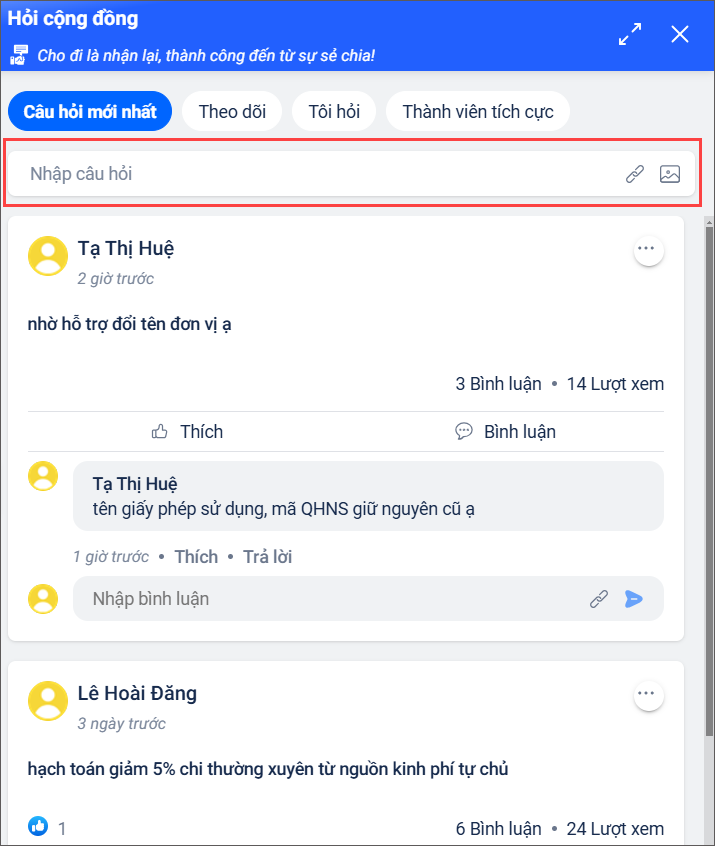 2.1 Đặt câu hỏi trong cộng đồng MISA Mimosa Online