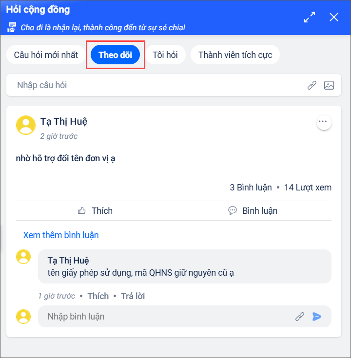 2.2 Theo dõi bài viết do chính mình hỏi hoặc chia sẻ