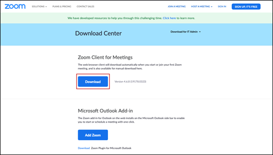 Bước 2: Chọn Download Zoom Client for Meetings.