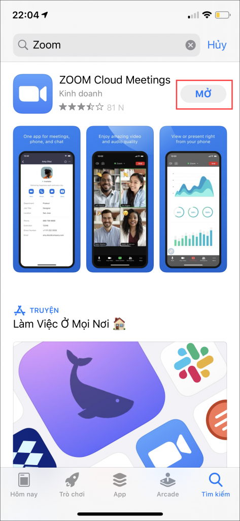 Bước 1: Vào App Store để thực hiện tải ứng dụng Zoom.