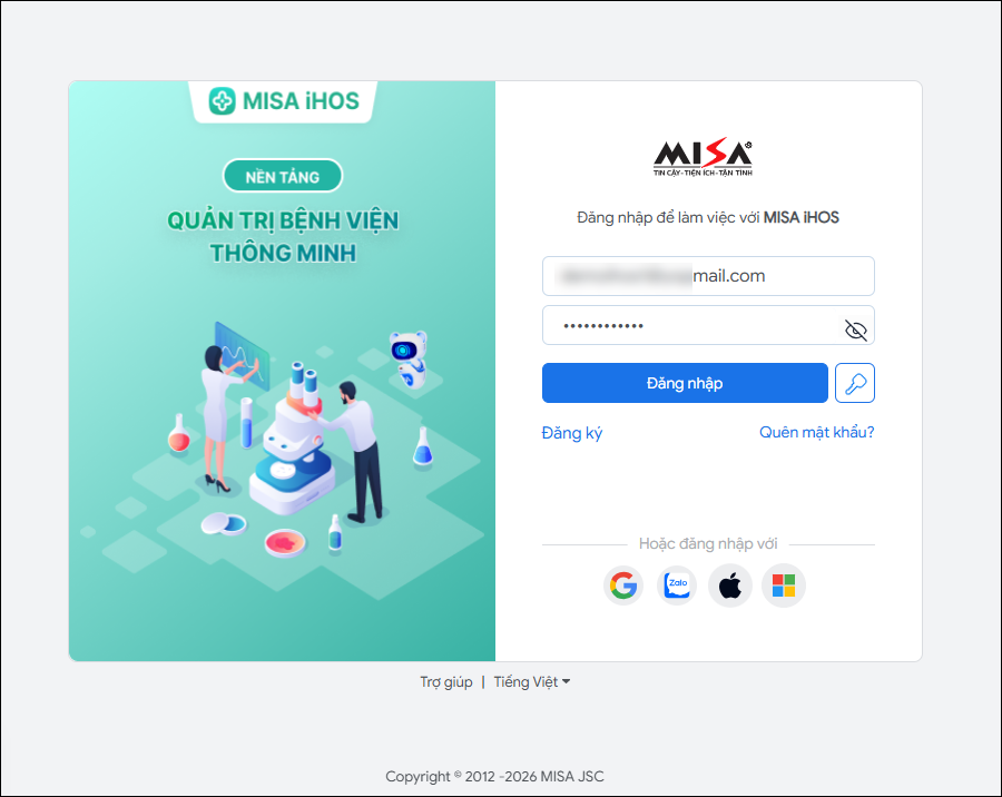 Bước 1: Nhấn vào đường dẫn nền tảng MISA iHOS https://ihosapp.misa.vn/ để đăng nhập.