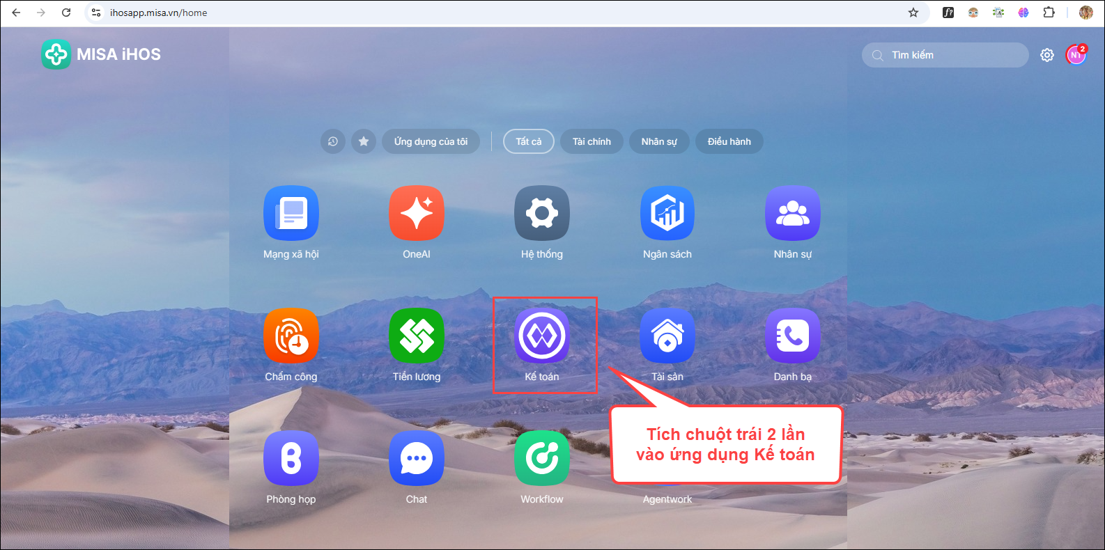 Bước 3: Tích chuột trái 2 lần vào ứng dụng Kế toán để tiếp tục làm việc