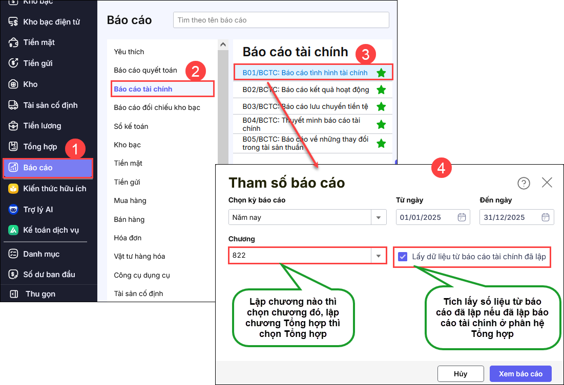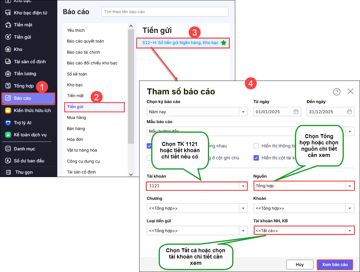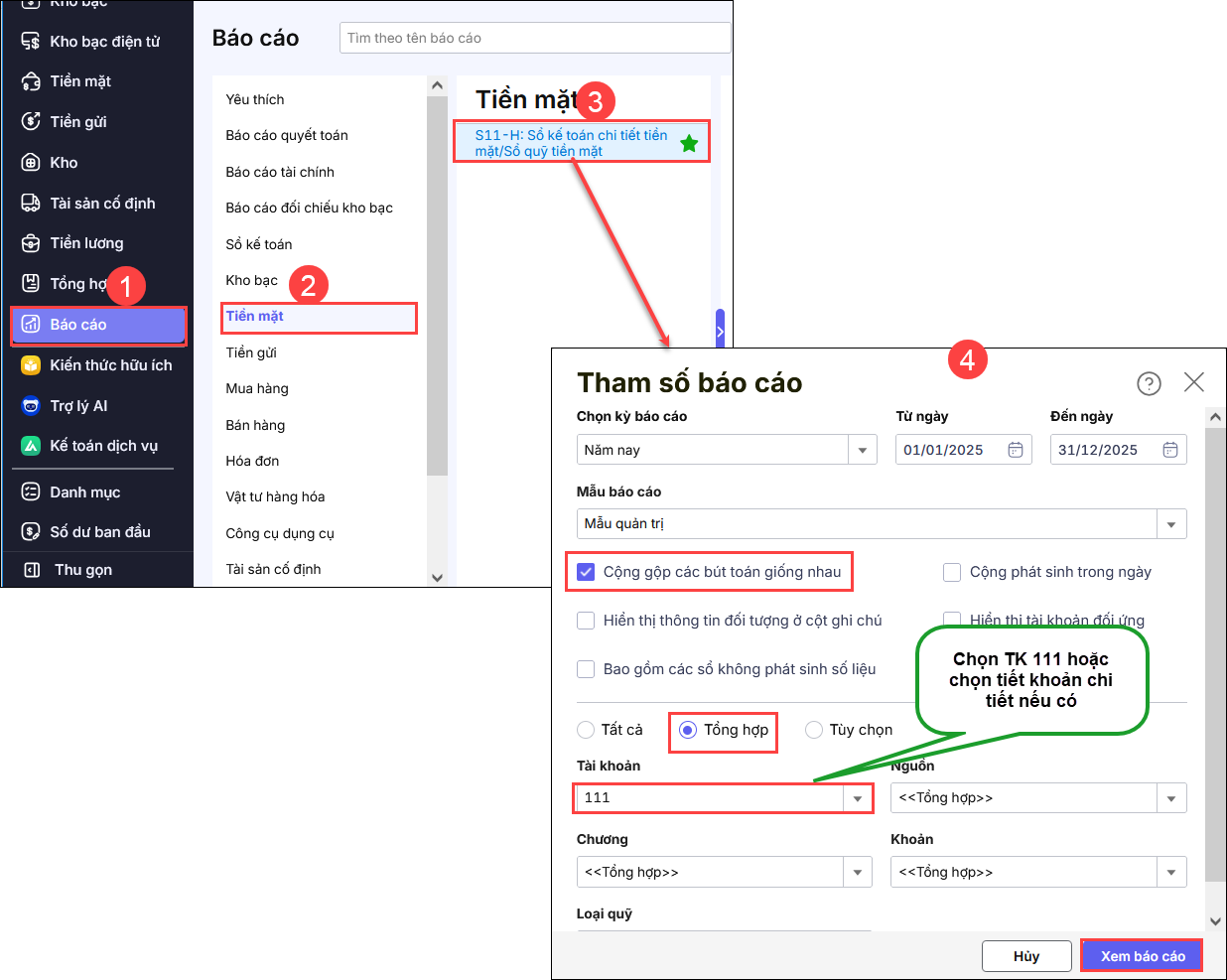 Bước 2: Chọn tham số in báo cáo phù hợp