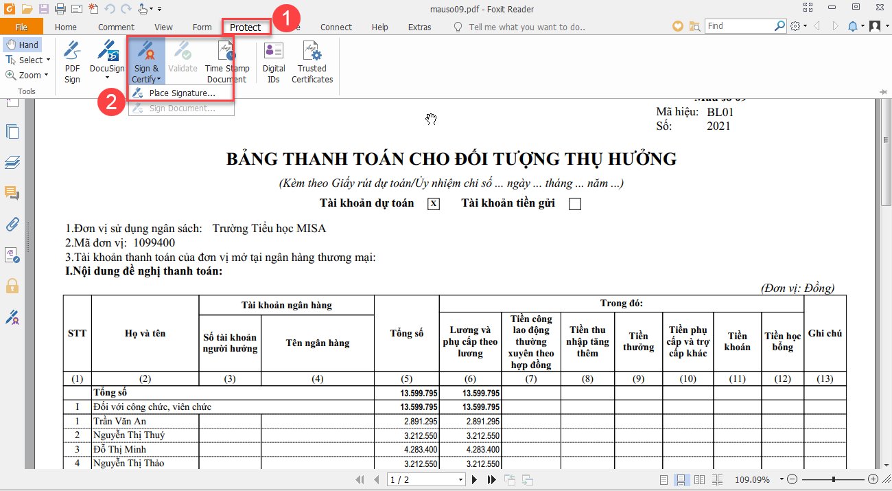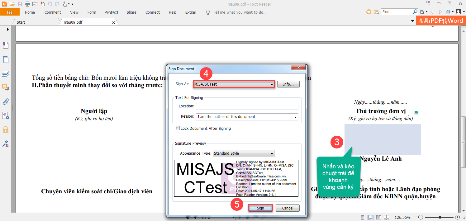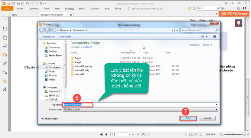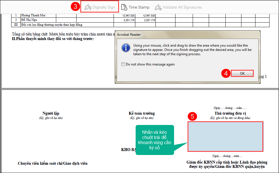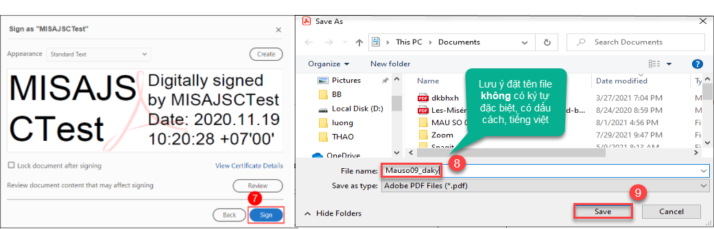 - Khi Save as file đã ký số không đặt tên file có ký tự đặc biệt, có dấu cách và các ký tự bằng tiếng việt ví dụ:“đ”, “Đ” (thay bằng các ký tự “d”,”D”, viết liền và không dấu) để hồ sơ chứng từ khi gửi sang kho bạc, cán bộ kho bạc mở được file đính kèm.