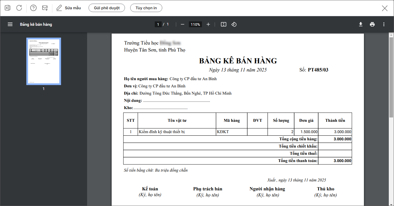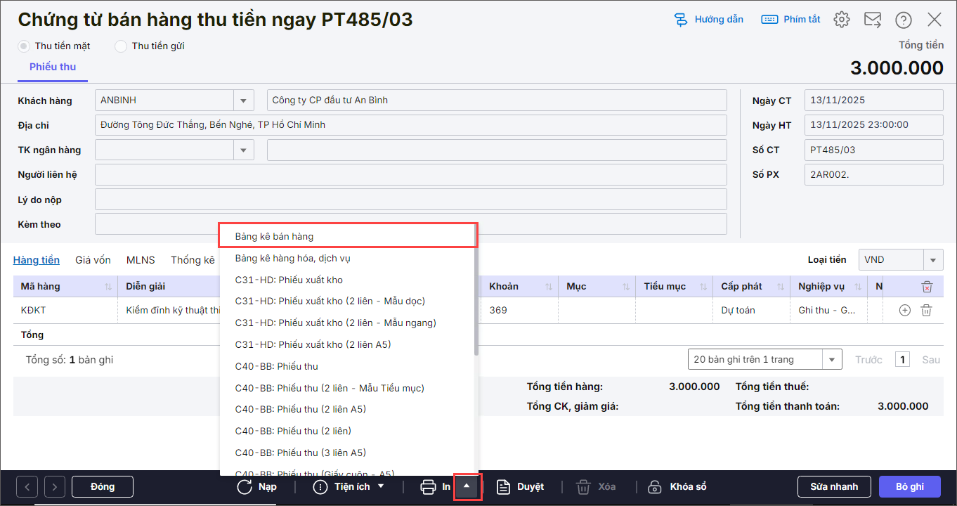 Bài viết này hướng dẫn bạn có thể in Bảng kê bán hàng để đáp ứng nhu cầu của từng đơn vị.