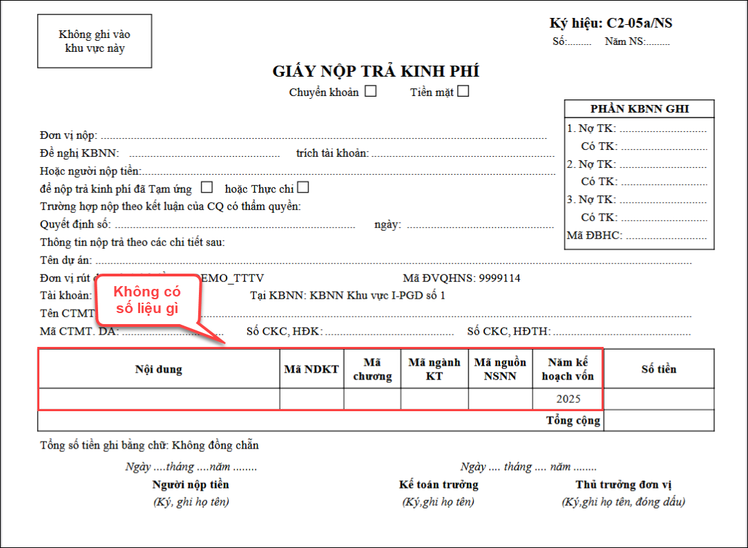 Bạn tham khảo thêm hướng dẫn In giấy nộp trả kinh phí (C2-05a/NS) tại đây