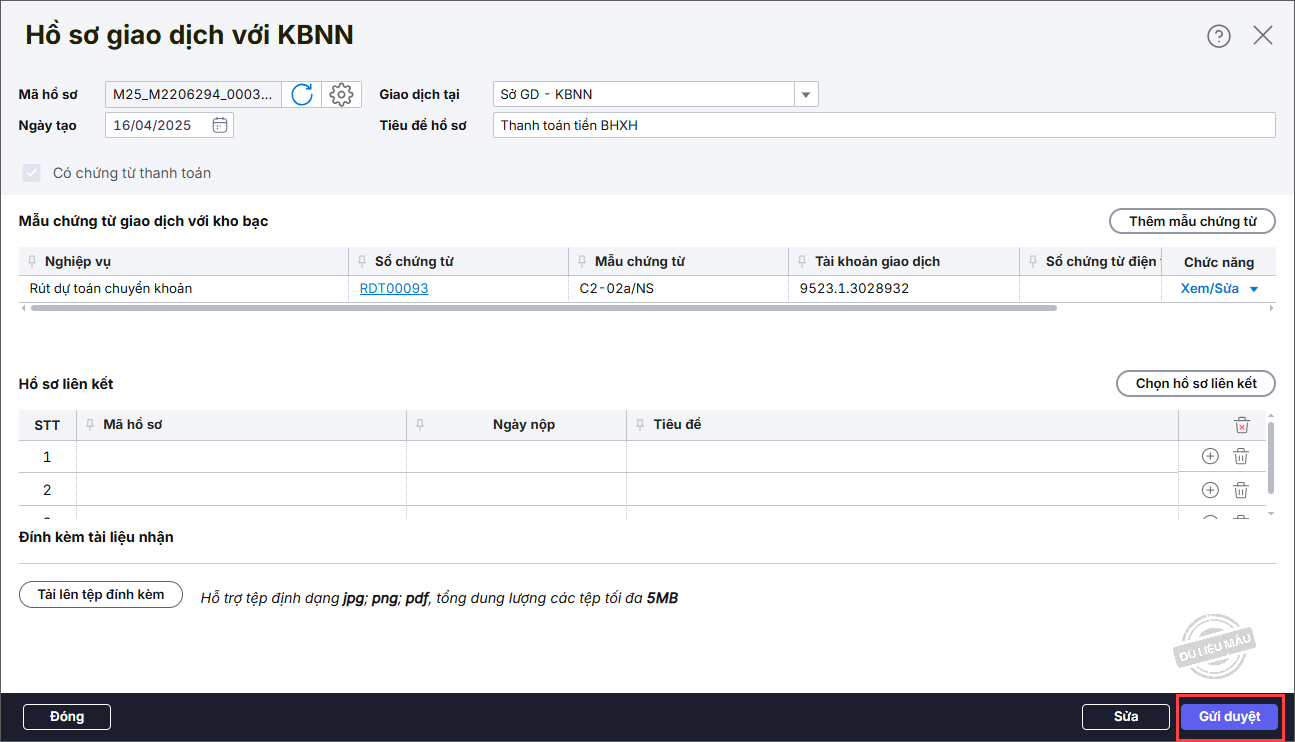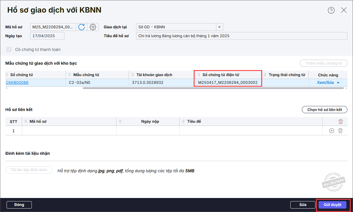 Bước 8: Nhấn Gửi duyệt để gửi hồ sơ cho Kế toán trưởng phê duyệt.