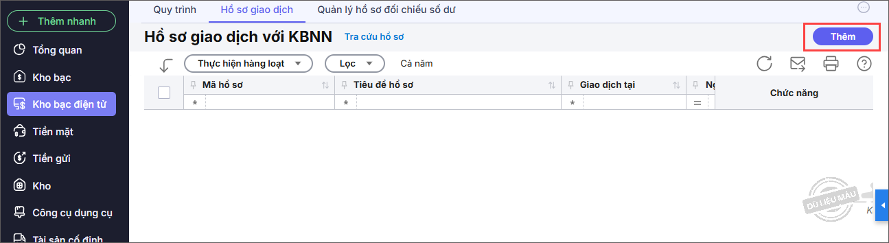 Bước 2: Tại tab Hồ sơ giao dịch, nhấn Thêm.